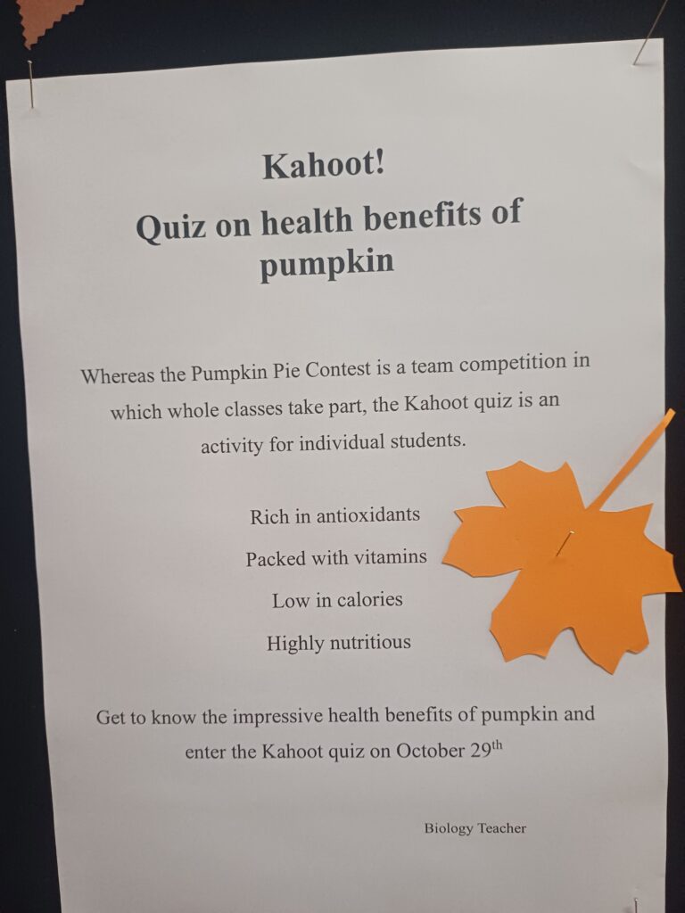 O godz. 10:45 odbył się indywidualny konkurs Kahoot o właściwościach zdrowotnych dyni.