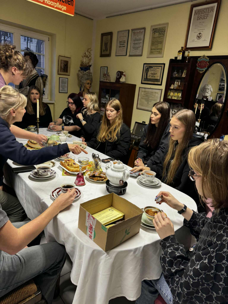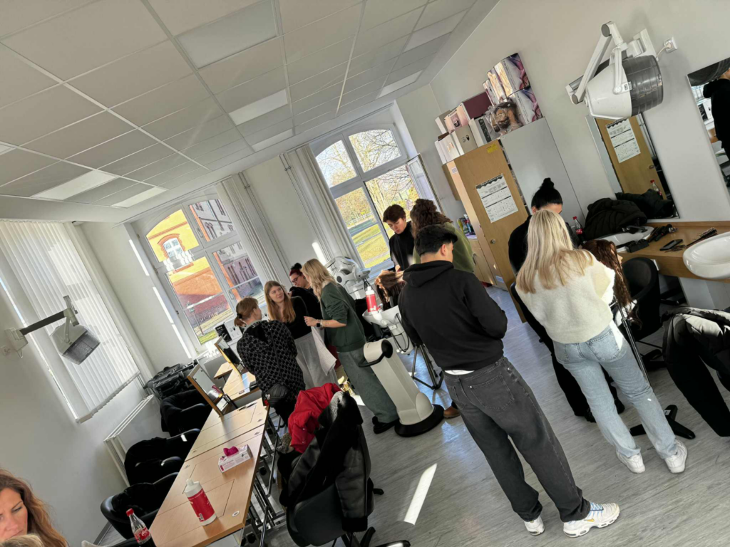 Wraz z opiekunami, p. Krystyną Wilkus i p. Tomaszem Ząbkiem, zwiedzili kampus szkolny, uczestniczyli w konkursie na fryzurę, odwiedzili wspaniałe muzeum fryzjerstwa w Magdeburgu i w Izbie Rzemiosła we Frankfurcie przeszli kurs masażu relaksacyjnego.