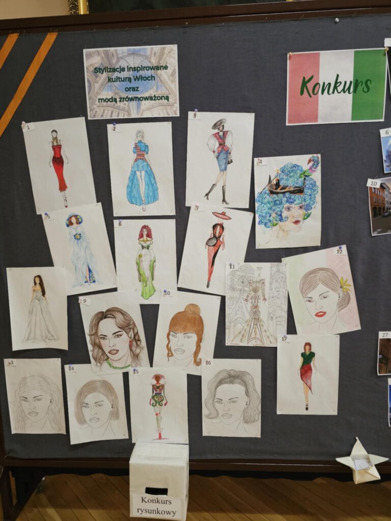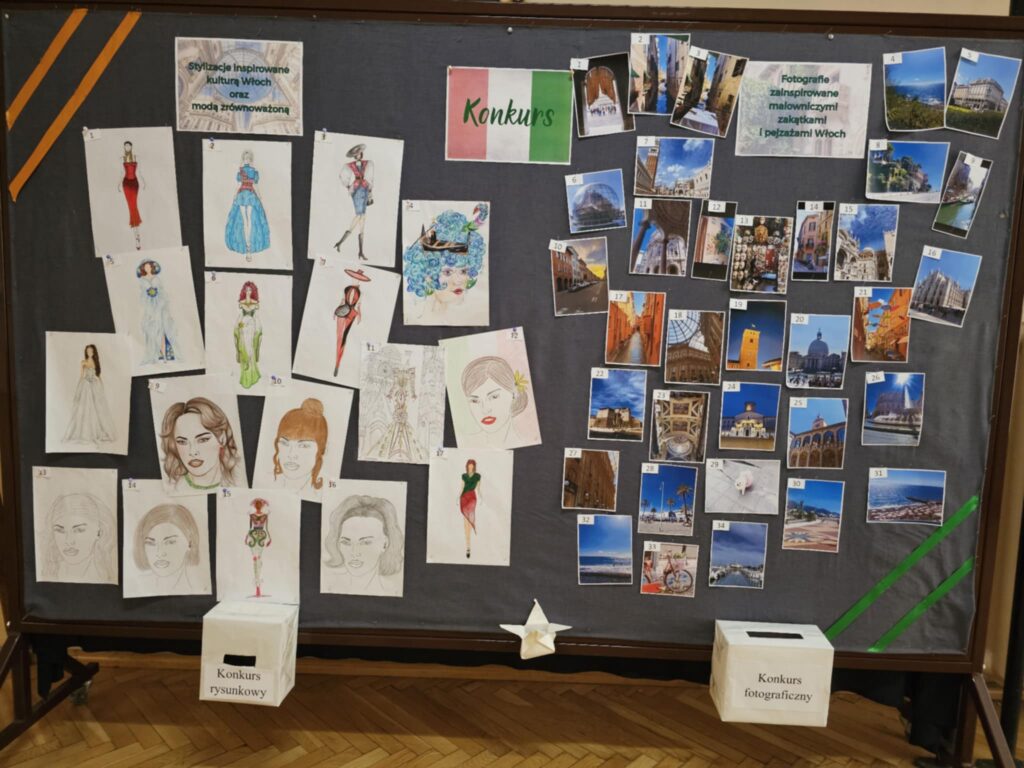 W miesiącu listopadzie na terenie szkoły trwał konkurs na najlepszą „Stylizację inspirowaną kulturą Włoch oraz modą zrównoważoną” i konkurs na „Fotografie zainspirowane malowniczymi zakątkami i pejzażami Włoch”. Prace te były przygotowane przez uczestników stażu w Reggio Emilia we Włoszech podczas trwania stażu Erasmus. W głosowaniu na najlepsza prace brała udział cała społeczność uczniowska w szkole. Na koniec listopada zostały ogłoszone wyniki.