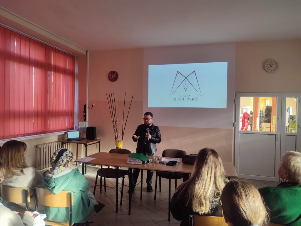W środę – 22.11 – w świetlicy szkolnej odbyło się spotkanie z panem Łukaszem Mikulewiczem – Projektantem, Personal shopperem oraz Visual Merchandiserem tworzącym kolekcje pod wybory Miss Polonii Wielkopolski.
