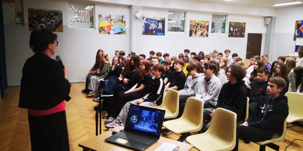 Podczas spotkania z uczniami klas 7 i 8 zaprezentowała naszą ofertę edukacyjną, której celem było zainspirowanie młodych ludzi do rozwoju oraz świadomego kształtowania swojej ścieżki zawodowej już od wczesnych lat szkolnych.