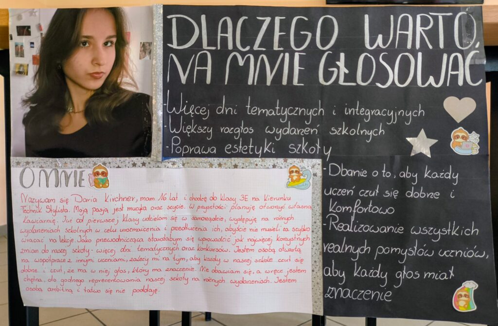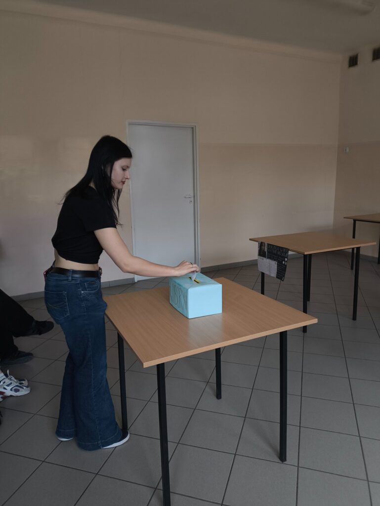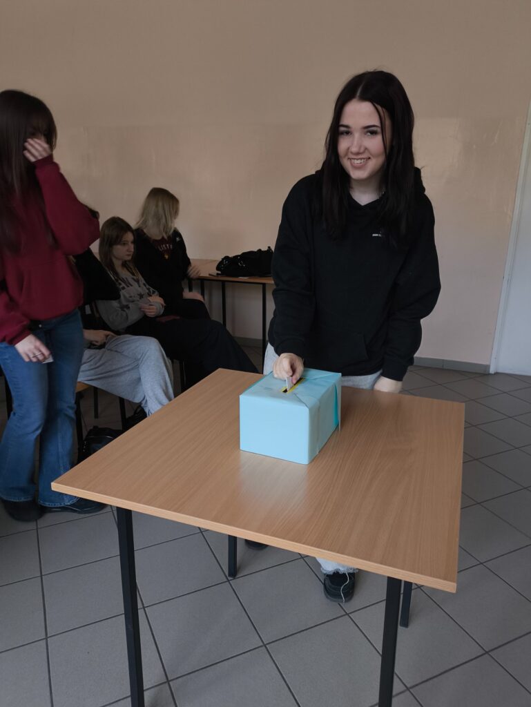 Relacja z I tury wyborów na Przewodniczącą Samorządu Uczniowskiego 12 marca o godz. 11:20 odbyła się I tura wyborów na Przewodniczącą Samorządu Uczniowskiego. W wyborach wzięła udział młodzież klas technikum oraz klas nieparzystych szkoły branżowej. Kandydatkami na stanowisko Przewodniczącej SU są uczennice klasy 3E– Daria Kirchner oraz Emilia Librowska. Podczas spotkania kandydatki zaprezentowały swoje programy wyborcze oraz przedstawiły propozycje działań, które chciałyby zrealizować w przypadku objęcia funkcji przewodniczącej. Na II turę wyborów zapraszamy młodzież szkoły branżowej klasy parzyste dnia 19 marca ( czwartek) o godz. 11:20.