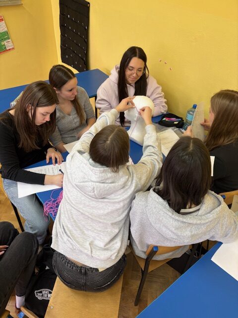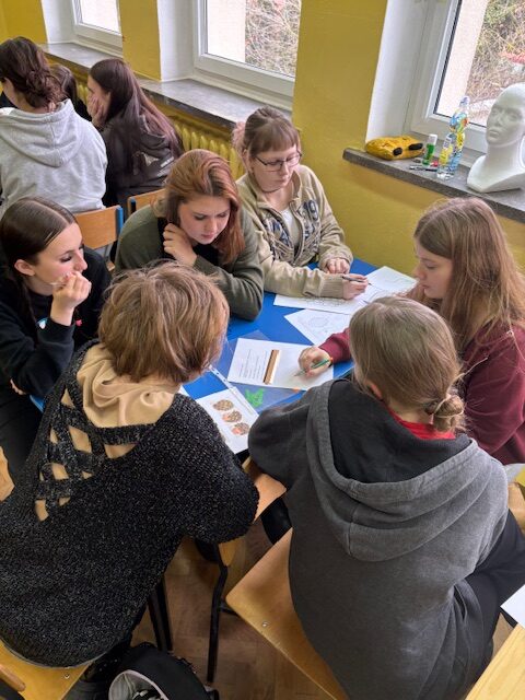 Uczniowie klas IV Technikum Odzieżowo‑Usługowego wzięli udział w kolejnych zajęciach z cyklu „ciekawe lekcje”, podczas których pracowali w grupach, rozwijając umiejętności myślenia przyczynowo‑skutkowego.