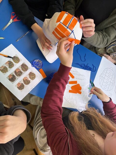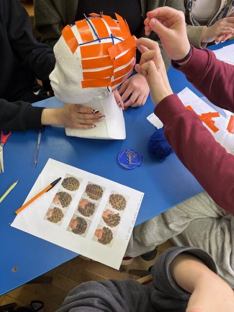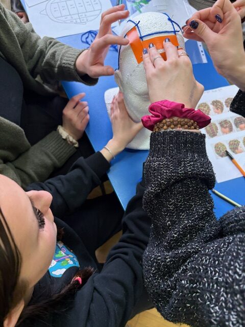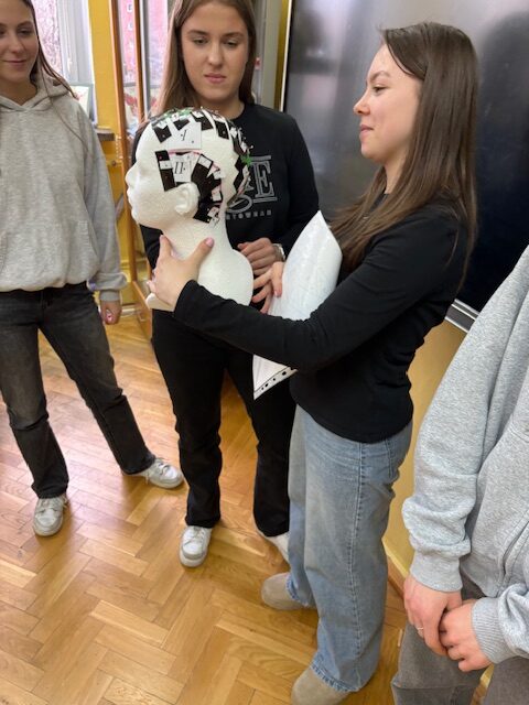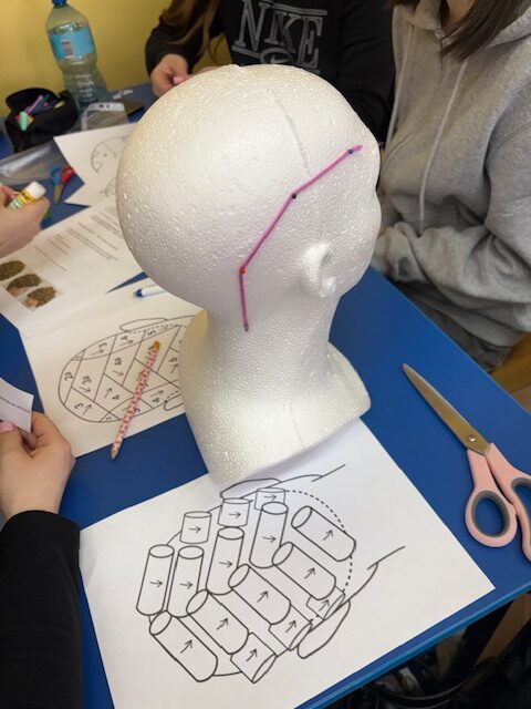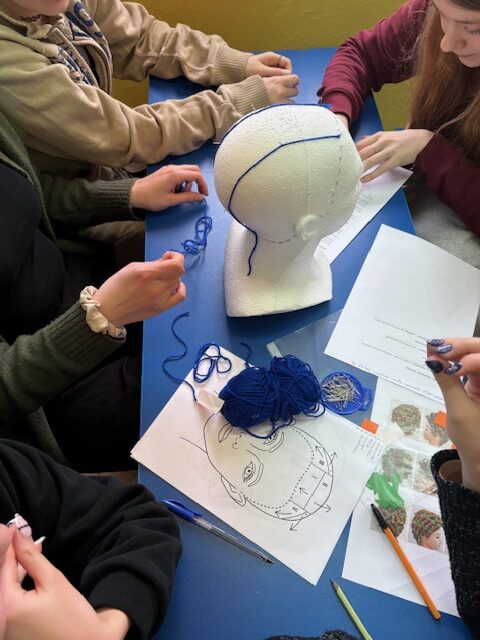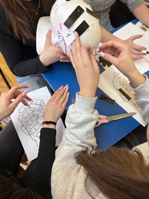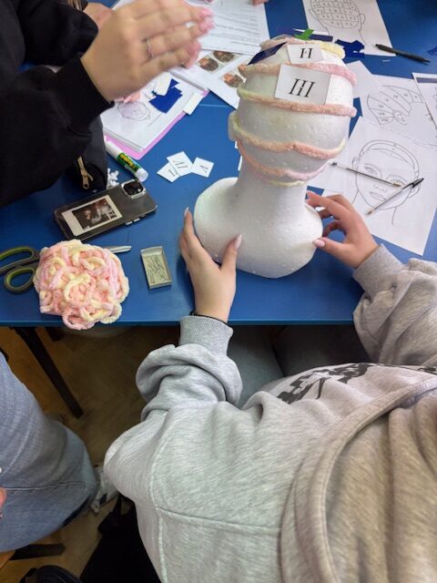 Młodzież wykonywała na główkach styropianowych elementy sekcji i separacji włosów, a także układy, symbole oraz techniki nawijania wałków niezbędne do uzyskania określonej fryzury.